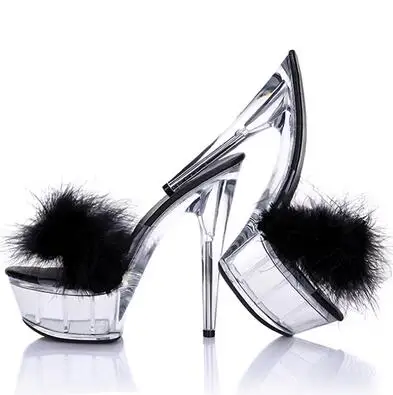 Women Sandals Summer New Paragraph Transparent Crystal Super High-Heel 15 cm Platform 5 cm Slipper